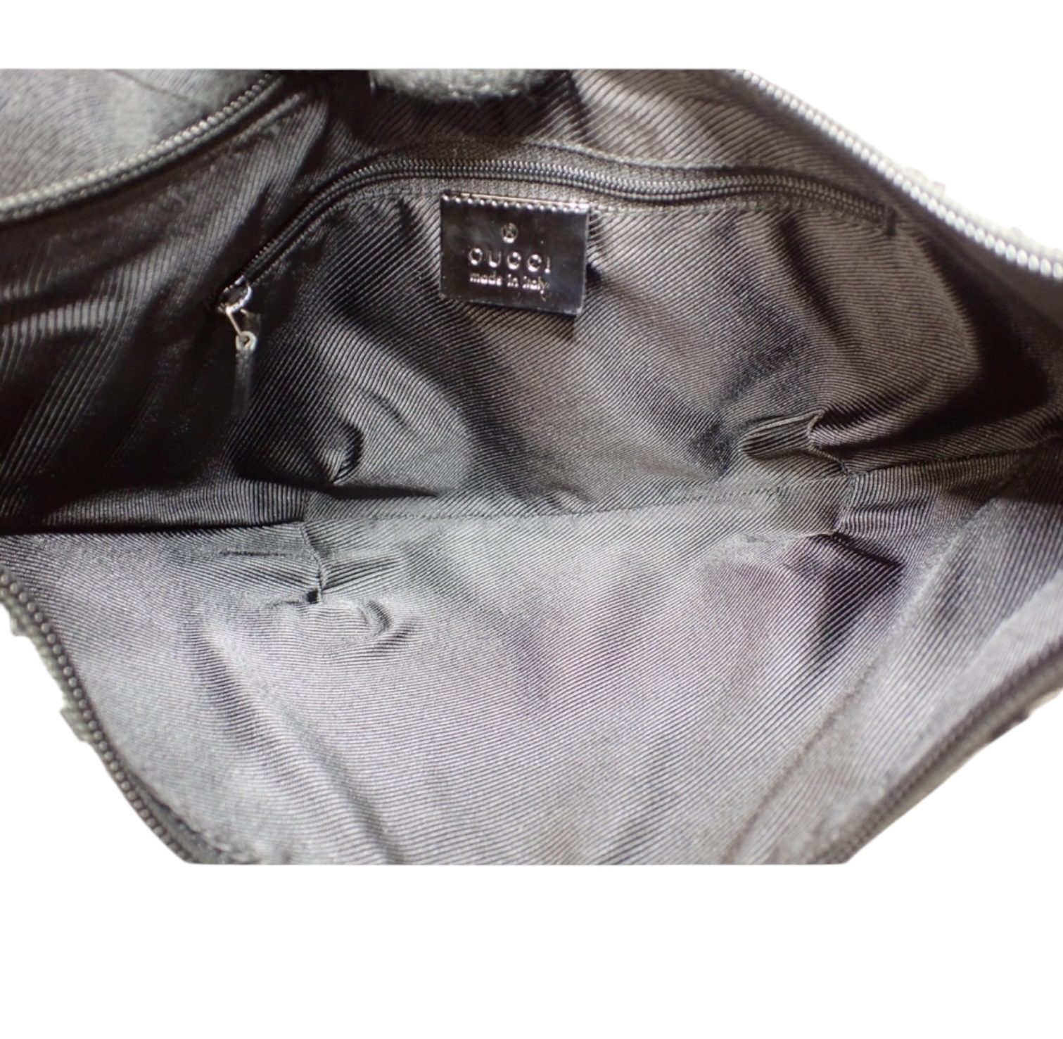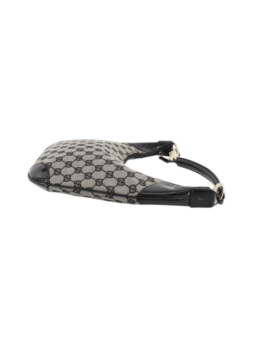 Κλασική shoulder bag από τον οίκο Gucci, κατασκευασμένη από το εμβληματικό GG monogram canvas σε μπεζ/μαύρους τόνους. Το slouchy hobo σχήμα αγκαλιάζει φυσικά τον ώμο, ενώ οι μαύρες δερμάτινες λεπτομέρειες και το minimal hardware χαρίζουν κομψότητα και διαχρονικότητα.